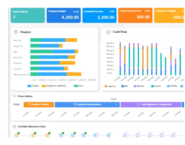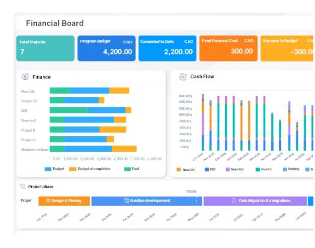 Unifiez la gestion des budgets, le suivi des coûts et la trésorerie dans un système sécurisé. Automatisez la facturation, les approbations et les rapports tout en garantissant conformité et traçabilité.