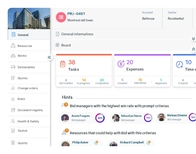 Grâce aux informations issues des modules Projet & Comptabilité, Gestion des tâches et Projet & Chantier, identifiez dès le départ les éventuels goulets d’étranglement ou risques budgétaires, et ajustez avant que des problèmes ne surviennent.