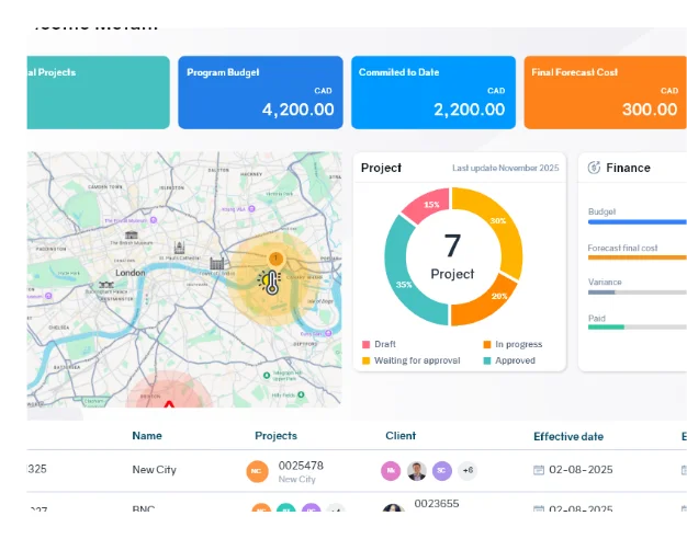 Obtenez une vision financière en temps réel sur l’ensemble de vos projets. Connectez budgets, tâches et contrats dans un système unique pour suivre les coûts, la rentabilité et la trésorerie au fur et à mesure de l’avancement des projets.