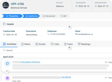 En connectant les modules CRM, gestion des soumissions, gestion des devis et gestion des contrats dans un système intelligent unique, il offre aux équipes une visibilité complète, réduit le travail manuel et augmente le taux de succès grâce à des analyses basées sur les données et à l’automatisation.